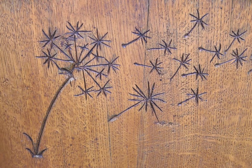 Die Pusteblume mit davonfliegendem Samen symbolisiert Leichtigkeit, Vergänglichkeit und die Hoffnung auf einen Neuanfang. Sie steht auch für die Seele, die auf Reisen geht, und den Wunsch nach Frieden und Freiheit.