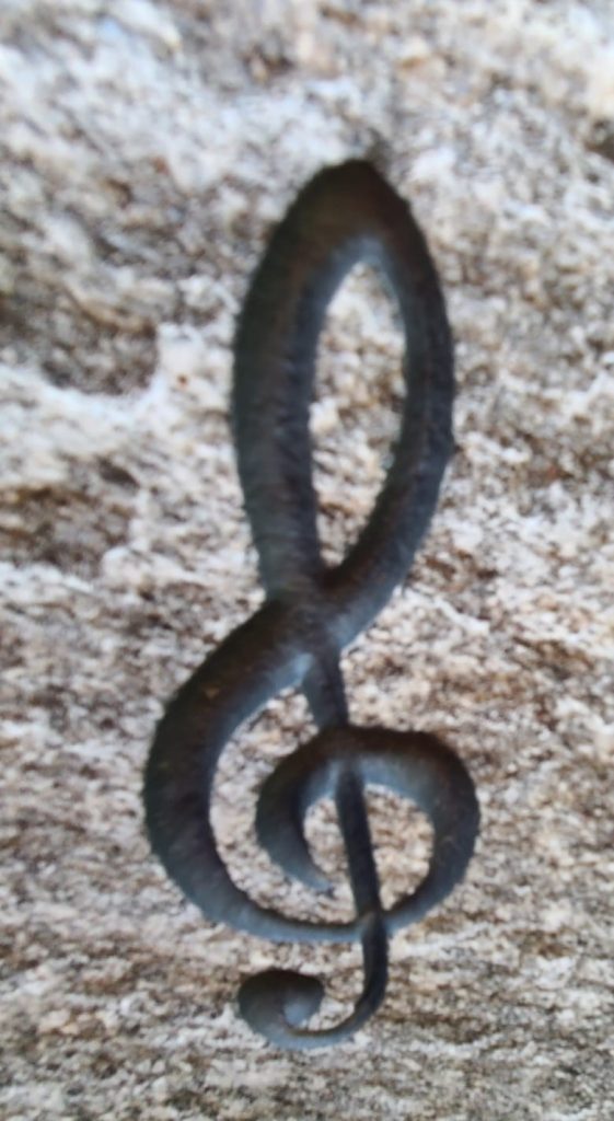 Notenschlüssel auf einem Grabstein ist meist ein Symbol, das auf Musik, Harmonie oder die Liebe zur Musik hinweist.