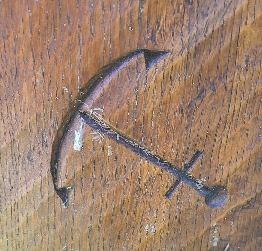 Das Schiff kann als Sinnbild für die letzte Reise ins Jenseits stehen. Der Anker symbolisiert Hoffnung, Glauben und das Vertrauen auf Gott in schwierigen Zeiten.