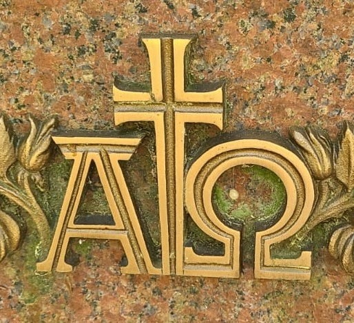 sind der erste und der letzte Buchstabe des griechischen Alphabets. Sie stehen für Anfang und Ende – für das Umfassende und dass alles in Gottes Hand liegt. „Ich bin das A und das O, der Erste und der Letzte, der Anfang und das Ziel.“ (Offb. 22,13). Alpha und Omega erinnern uns daran, dass das irdische Leben vergänglich ist, aber Gott ewig bleibt.