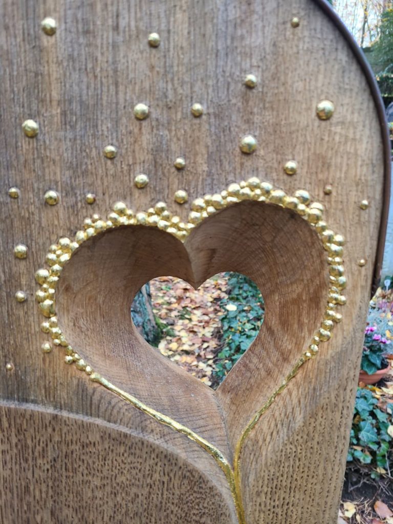 Ein Herz auf einem Grabstein symbolisiert Liebe und Verbundenheit über den Tod hinaus. Er kann die unvergängliche Liebe zwischen den Hinterbliebenen und der verstorbenen Person ausdrücken.